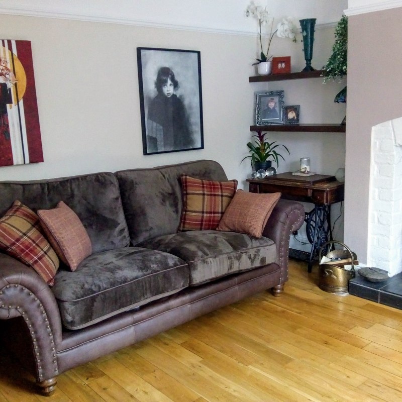 Photograph shown in 'Jin Brown' leather with Option 3 fabric set.