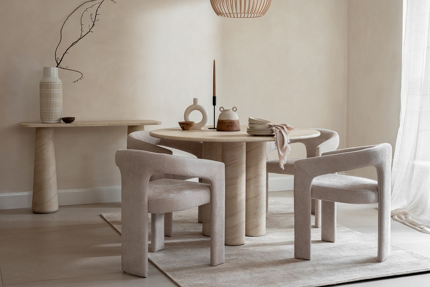 Shape: Round dining tables are intimate and work wonderfully for small spaces, ensuring conversation between guests can flow comfortably. Rectangular tables are perfect for large guest lists and open-plan homes. Remember to consider leg room, too—pedestal bases maximise room and seating flexibility without compromising style.