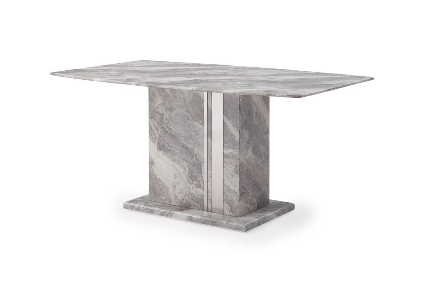 A bold choice with a chunky marble stand and silver-tone detailing. This dining table instantly turns a simple dinner into a memorable event.