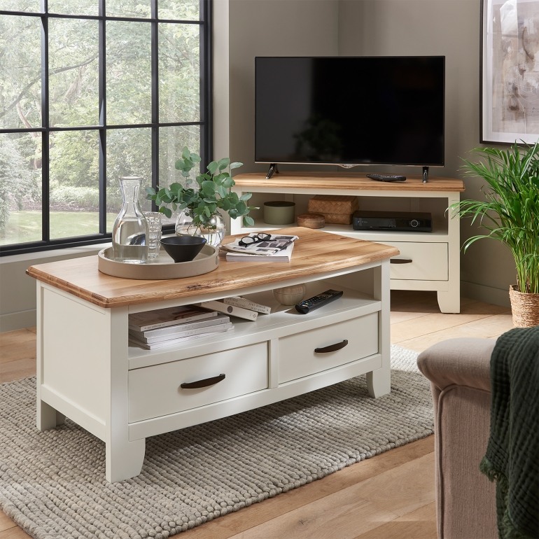 Key Piece: Oak City – Burma Pine Two Tone Coffee Table with Oak Top was £319 not £269 in our winter sale.