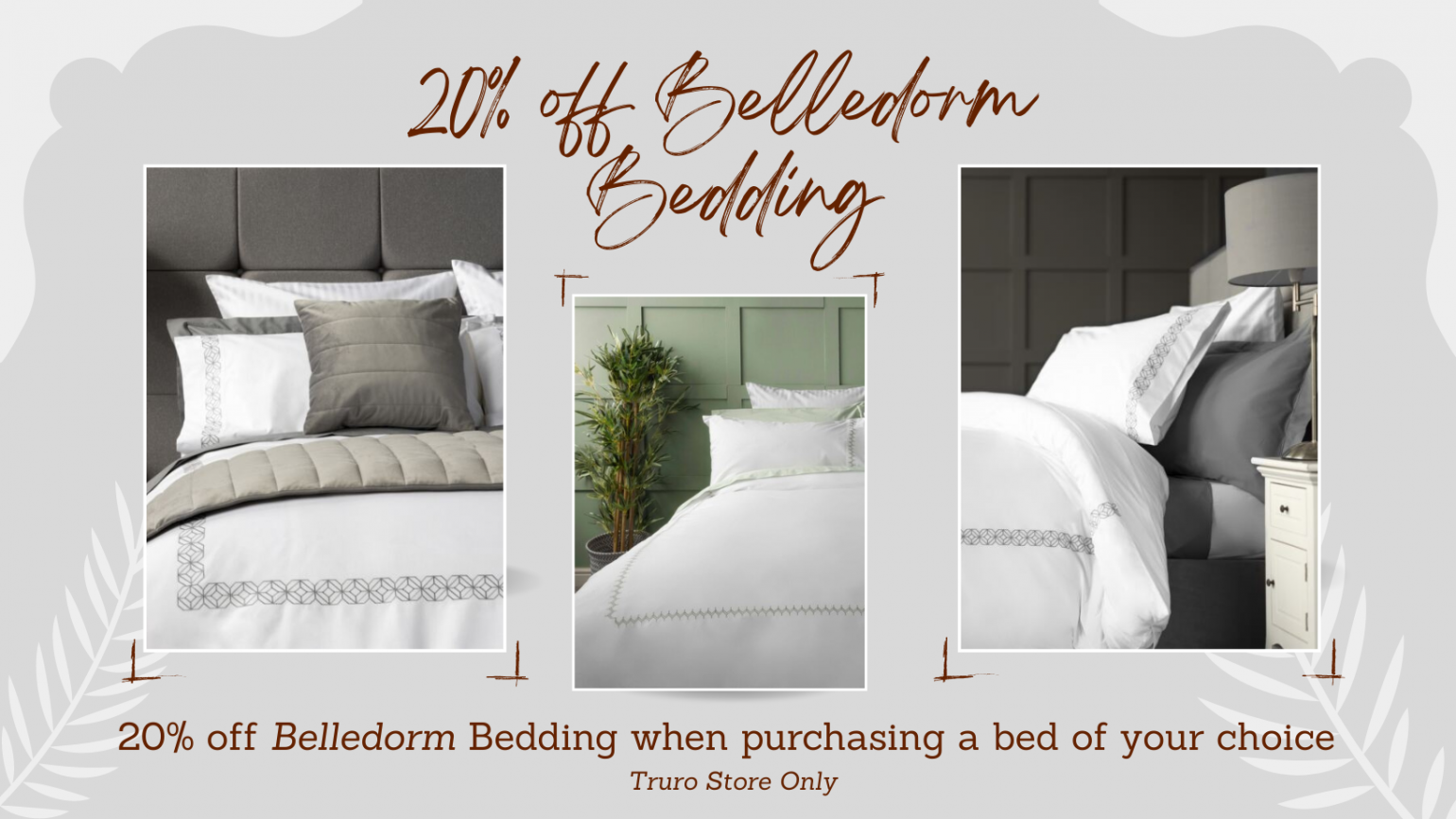 20% off Belledorm bedding with every bed purchased at our Truro Store!