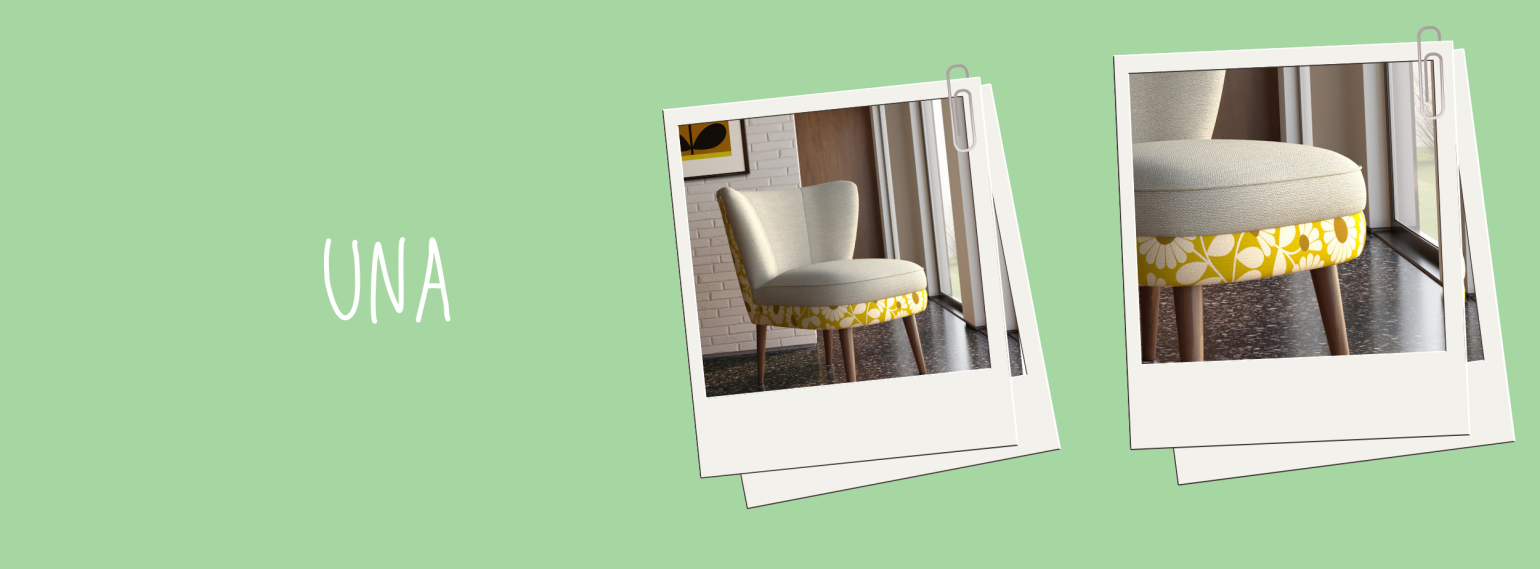 Finally, we have the Una. The Una features a beautifully embossed texture, the outer back and base of the seat feature your choice of stunning signature print. Slim splayed legs channel mid-century modern aesthetics and create a sense of space with their simplicity.