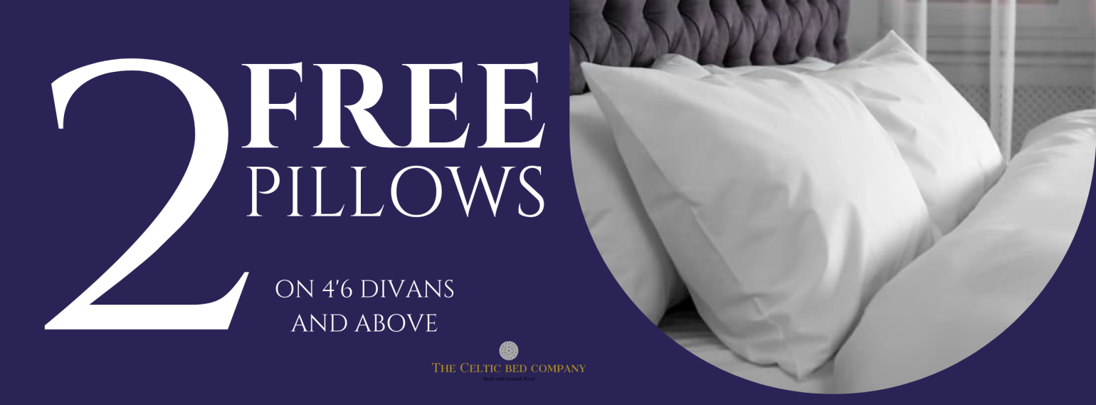 2 FREE The Celtic Bed Company pillows with 4'6 Divans and above