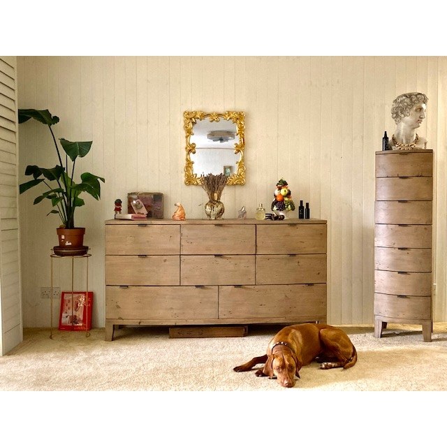 The Bermuda 7 drawer narrow tall chest is part of a distinctive range of bedroom furniture, with no two pieces looking exactly the same in their colours and markings. Perfect to fit into a narrow alcove, and to store away smaller items of clothing.