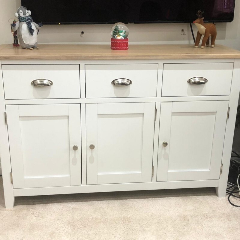 Chester Oak Painted White - Large 3 Door 3 Drawer Sideboard -130cm| F&B All White