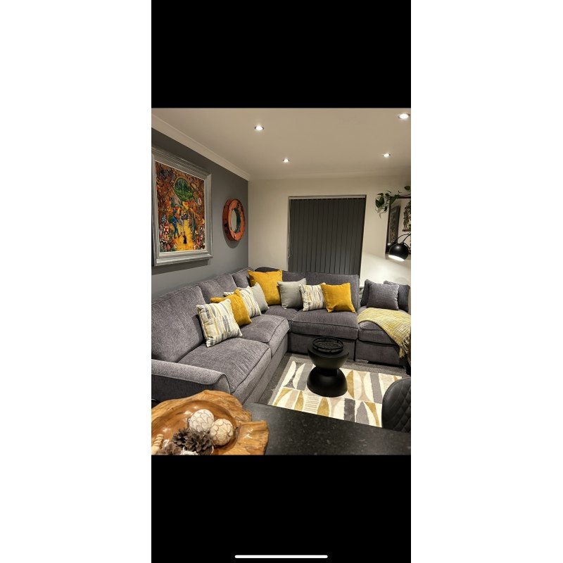 The Fantasy High Back Corner Chaise Sofa is a stylish and contemporary seating unit that is finished in a range of luxurious fabrics for the seat and back cushions and includes the matching large footstool.