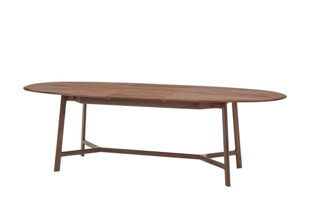This extending dining table in Walnut is a stylish and functional addition to any dining space. Its oval shape and walnut colour create a modern and inviting look. The table can be easily extended to accommodate additional guests, making it perfect for entertaining. The sleek, tapered legs add a touch of Scandinavian minimalism, while the rich walnut finish adds warmth and character to your home.