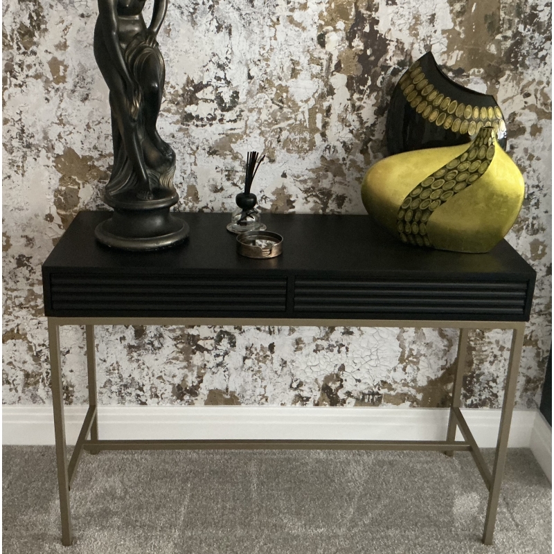 Gallery Direct Ripple Mango Wood Black & Gold 2 Drawer Console Table