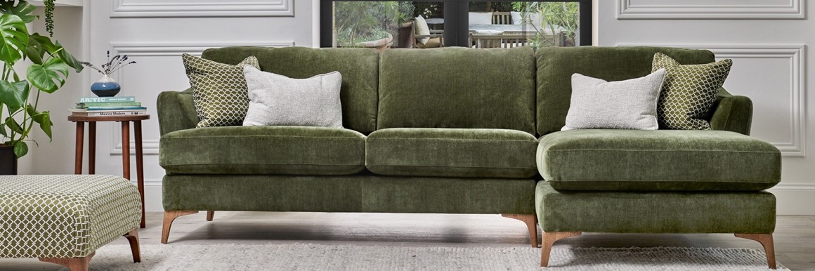 25 year frame guarantee Fully reversible premium foam seat cushions with fibre wrap Hollow pocketed fibre constructed back cushions Seats sprung by high gauge serpentine springs Backs fully supported by elasticated tensioned webbing Removable arms for easy delivery Available with solid wood feet in Smoke or Light finishes Also available with Brushed Chrome metal feet Feather filled scatter cushions...