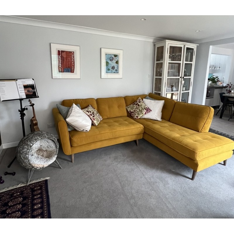 The Ivy corner sofa is a chic choice; with graceful curves, elegant piping and subtle buttonless tufting, with its iconic printed scatter cushions and retro colour palettes.