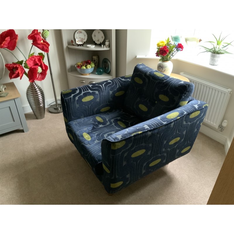 Ideal for classic and contemporary homes alike, the chair is enlivened by retro colour palettes and your choice of striking signature prints. Chic buttoned tufting and piped detailing provide an elegant edge, whilst high sloping armrests and a complementary scatter cushion ensure a snug sit.